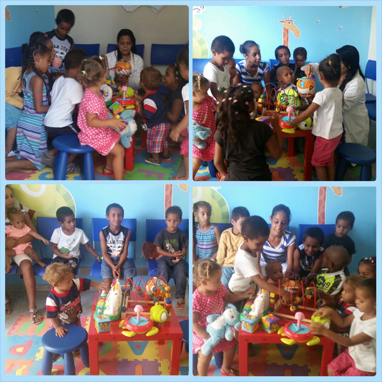 En un esfuerzo por hacer mas placentera la espera para los pequeños(as) que asisten a la consulta de ¨Crecimiento y Desarrollo¨, existe un lugar especial para ellos (separado de la consulta de Adultos). Mientras esperan su turno se les proporciona juguetes educativos, materiales para dibujar y juguetes anti-estres.